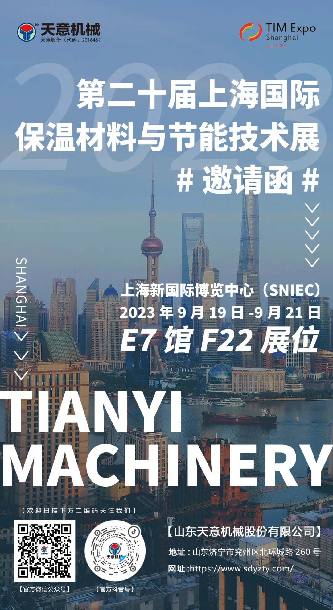 展會預(yù)告丨天意機(jī)械即將亮相第二十屆上海國際保溫材料與節(jié)能技術(shù)展